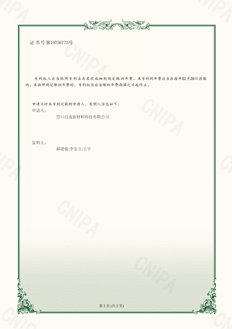 營口昌成新材料科技有限公司 版權(quán)所有(C)2021?網(wǎng)絡(luò)支持?中國化工網(wǎng)?全球化工網(wǎng)?生意寶?網(wǎng)盛建站?著作權(quán)聲明  遼ICP備2021005949號(hào)